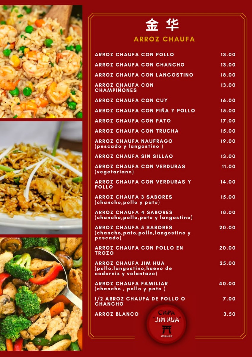 Chifa Jim Hua, located in Huaraz, Peru, invites diners to explore the delightful flavors of Peruvian Chinese cuisine. Renowned for its generous portions and affordable prices, this eatery specializes in vegetarian dishes, with highlights including their delectable vegetable chaufa and soothing ginger soup. Diners appreciate the friendly service and the vibrant ambiance, making it an accessible choice for both locals and visitors. Customers describe the food as simple yet satisfying, a perfect blend of taste and value. For anyone seeking a genuine Chifa experience, Chifa Jim Hua promises delicious meals at a price that feels just right.